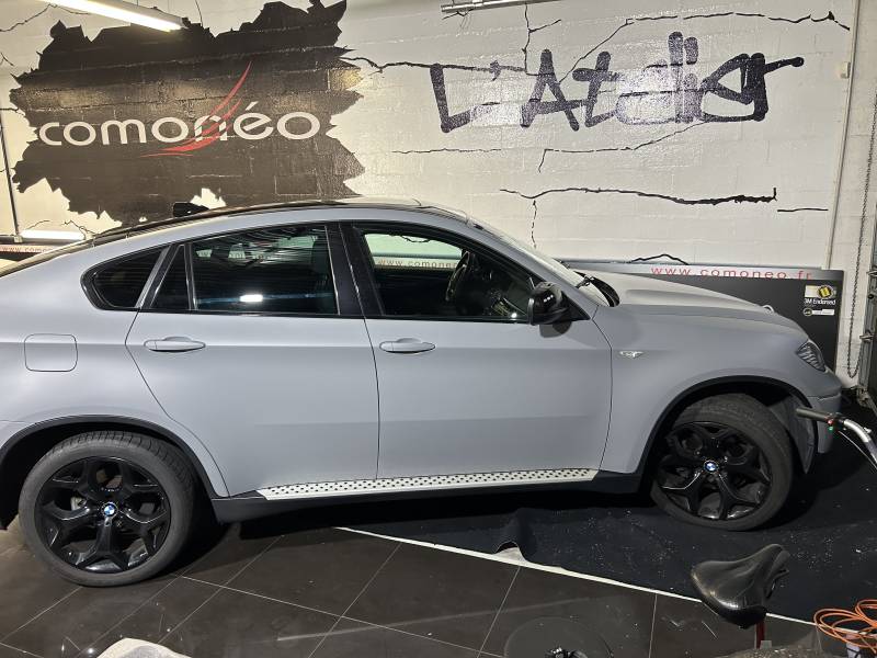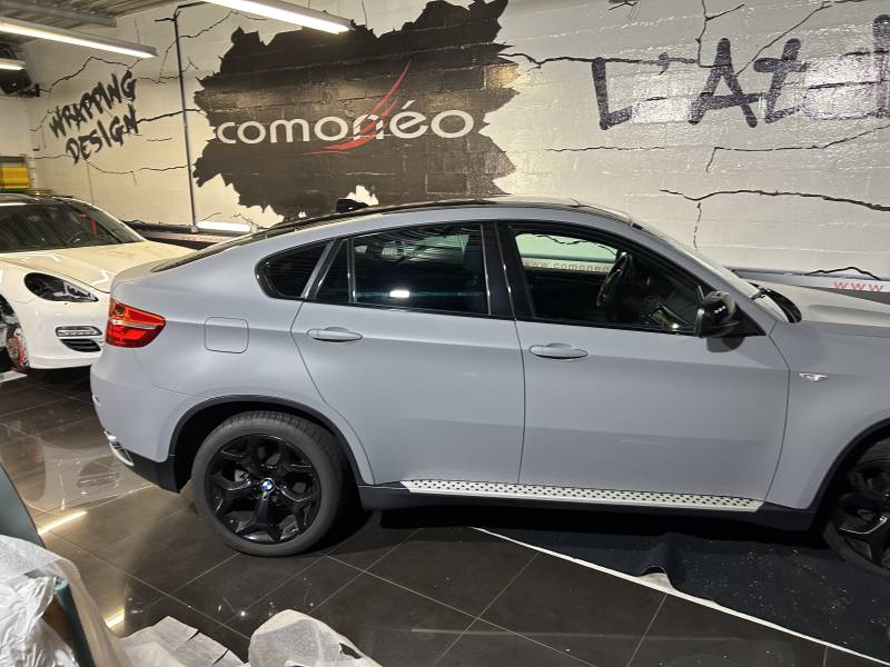 Le covering est une technique moderne qui consiste à recouvrir la carrosserie de votre voiture avec un film adhésif de haute qualité. Pour cette BMW X6, le choix du Gris Mat Nardo a été fait pour accentuer son allure sportive et élégante. Cette finition unique donne au SUV un caractère distinctif, tout en préservant le design audacieux et dynamique de ce modèle emblématique.