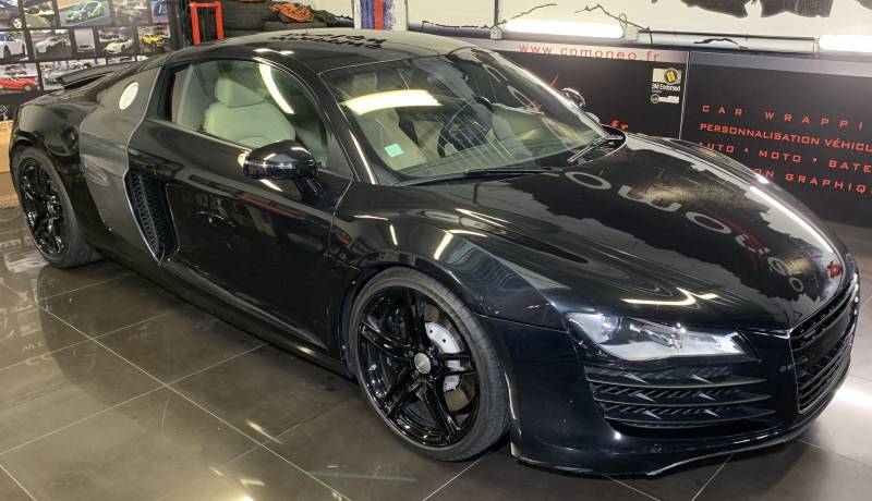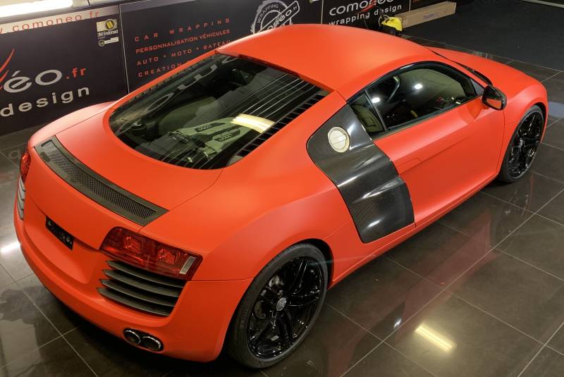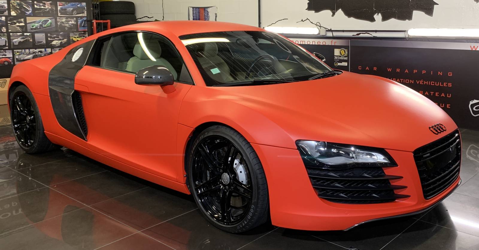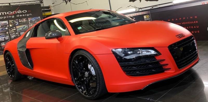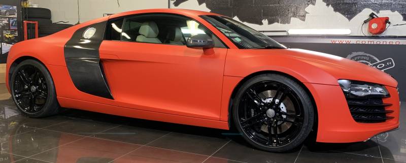 À l'origine, cette magnifique voiture était revêtue d'une peinture noir brillant, mais grâce à notre expertise, elle a été transformée en une œuvre d'art sur roues avec un wrapping rouge mat saisissant. Ce changement de couleur audacieux met en avant le caractère sportif et dynamique de la R8, tout en lui conférant une allure unique et moderne.